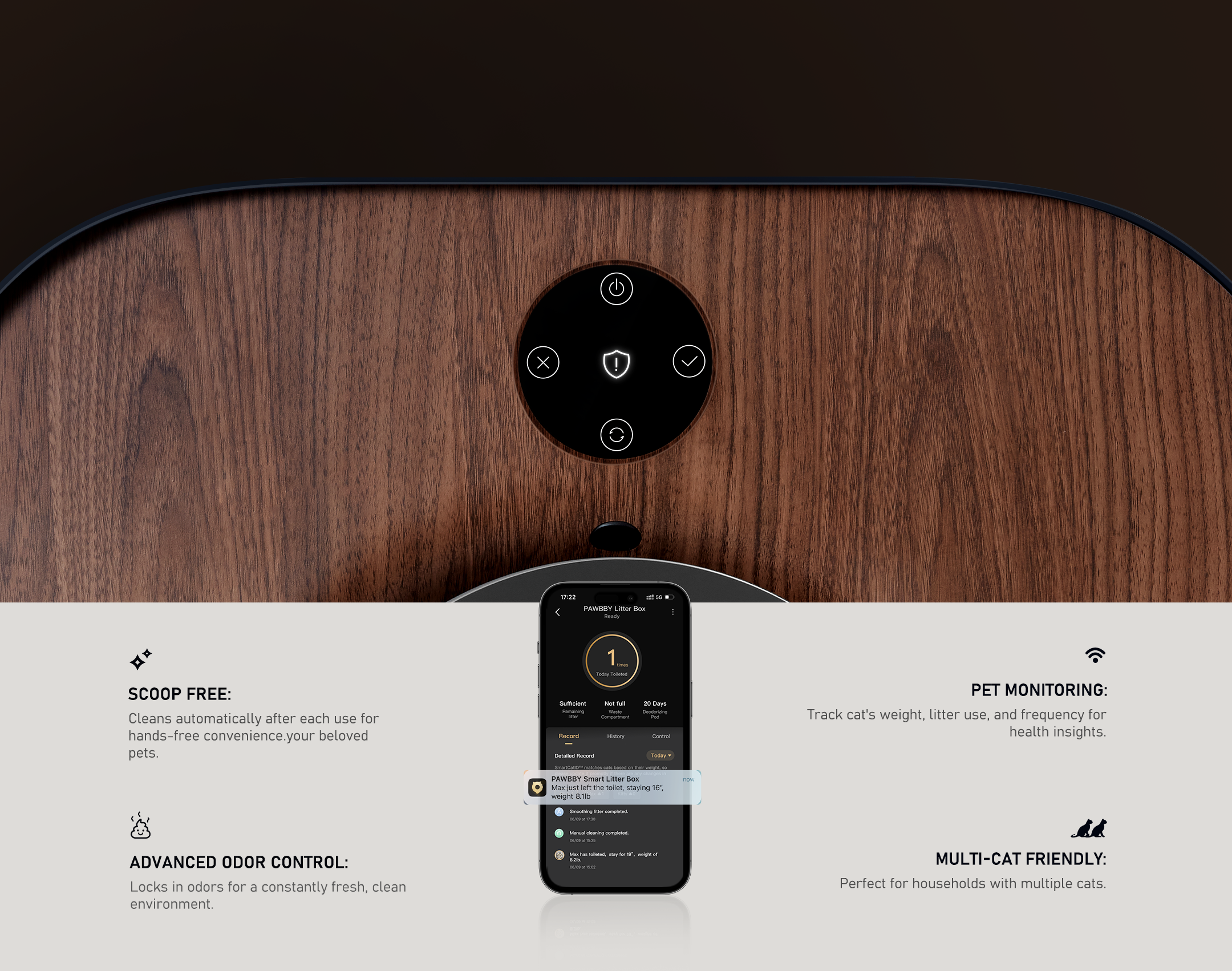 PAWBBY smart cat litter box have removable parts that are easy to clean. The waste compartment can be emptied and washed with mild soap and water.